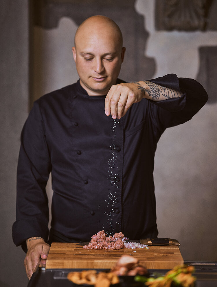I believe that every dish is a reflection of our soul and of the emotions we want to express. Each culinary creation needs to be prepared using local ingredients, enhancing their nutritional value and freshness; every dish should be balanced so that it is in harmony with the world surrounding it".